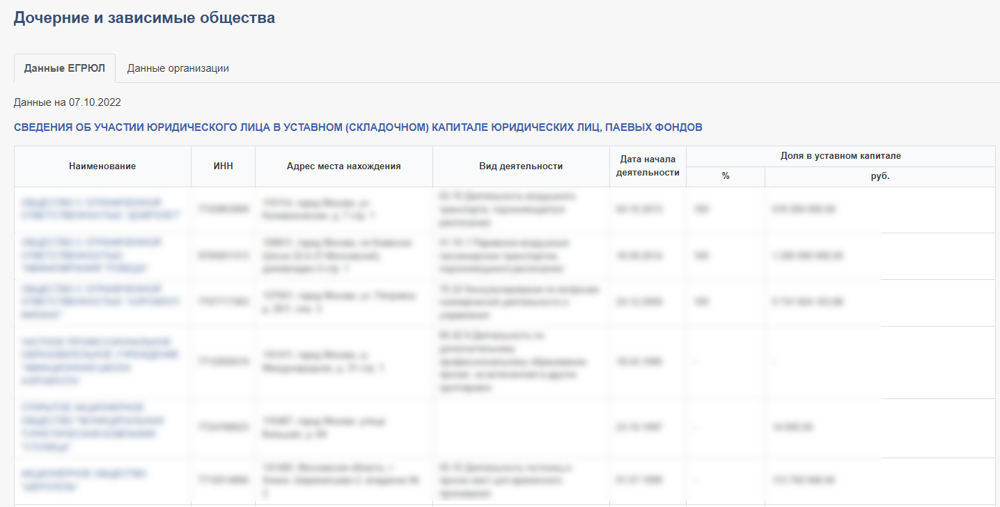 И ее дочерние организации