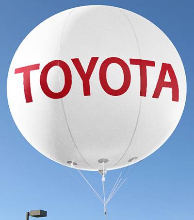 I palloni aerostatici, con forma sferica o di dirigibile, sono completamente personalizzabili tramite striscioni e sono particolarmente indicati per manifestazioni o eventi di breve durata (da 2 a 7 giorni): inaugurazioni o aperture straordinarie di punti vendita, conventions, operazioni pubblicitarie, tour promozionali ecc .