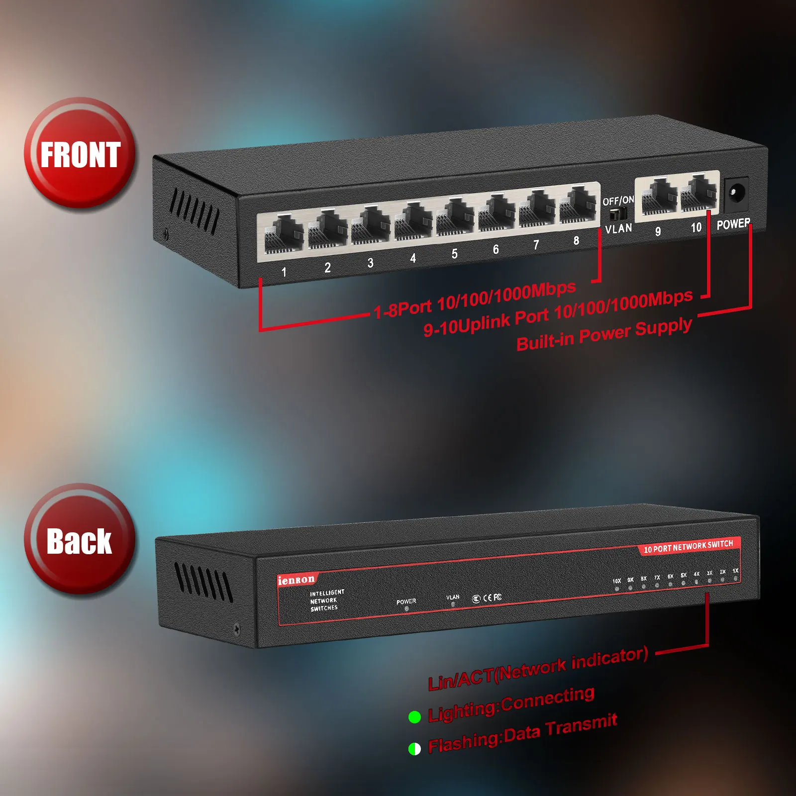 IENRON Gigabit Switch 5/8/10 Ports 1000Mbps VLAN RJ45 Hub Smart Ethernet Metal Switcher IEEE802.3at/af for IP Camera/WiFi Router - Купить с бесплатной доставкой