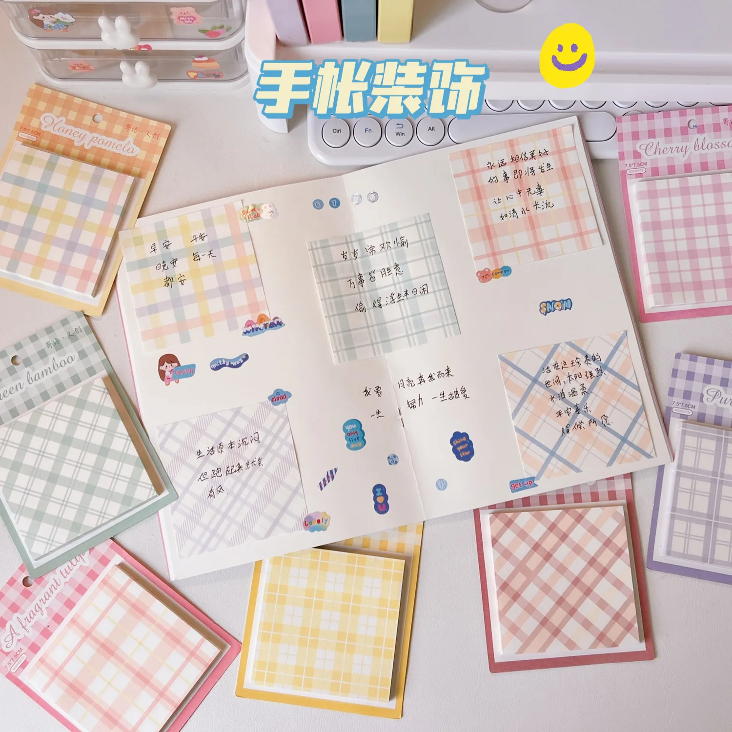 IFFVGX 50 Sheets Ins Simplicity Memo Pad Gradient Colorful Lattice Style Sticker Set for DIY Decorative Scrapbook Student - Купить с бесплатной доставкой