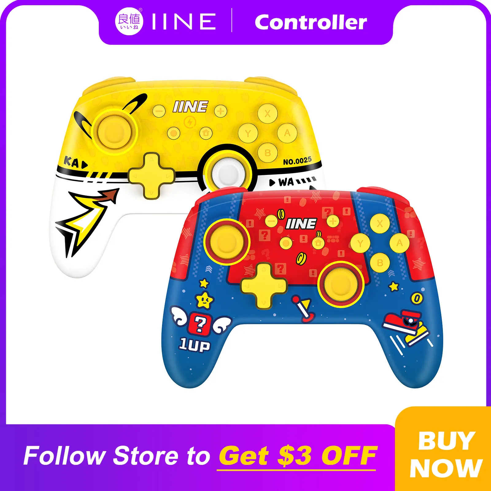"IINE Yellow RedBlue Wireless Wake Up NFC Controller Compatible Nintendo Switch/OLED" * Buy Now With Free Shipping Just For $44