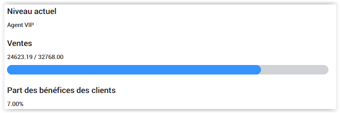 La jauge du haut se remplit avec le chiffre d'affaire de ses filleuls directs ET leur chiffre d'affaire respectif.