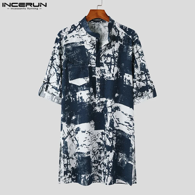 BCvixgPJGdHere you can buy INCERUN 2023 Stylish Muslim Style New Men's Robe Vintage Ink Painting Standing Neck Robe Medium Length Medium Sleeve Robe S-5XL with free delivery to your post office.