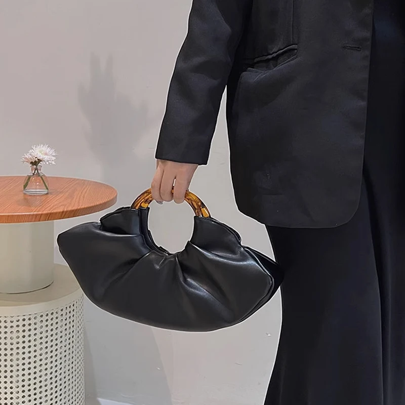 INS Hot Pure Color Hobos Ladies Special Round Amber Acrylic Handle Designer Bags Simplicity Handbags Trendy Unique Ruched Bag - Купить с бесплатной доставкой