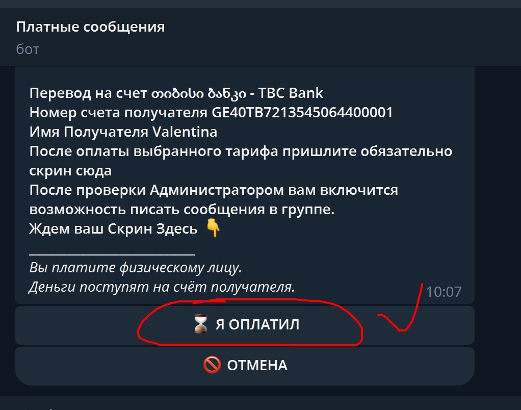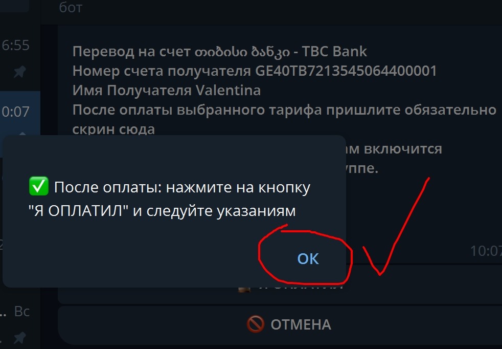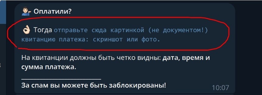 ТЕПЕРЬ ОТПРАВЬТЕ СКРИН ПОДТВЕРЖДЕНИЕ ОПЛАТЫ