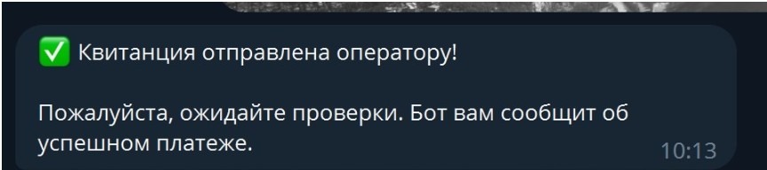 Пожалуйста, ожидайте проверки. Бот вам сообщит об успешном платеже.
