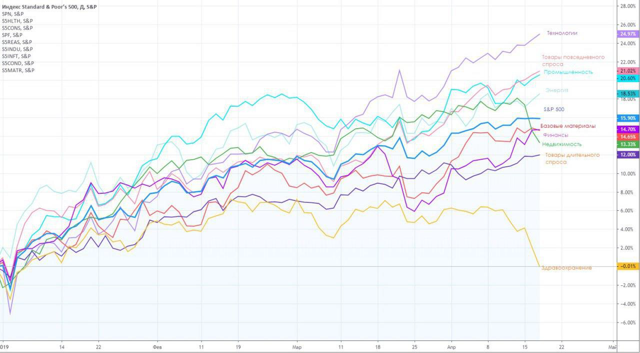 Рынки акций в целом позитивны (хоть вчера S&P и корректировался). Думаю, если так пойдет дальше, то не за горами take profit на анонсе Торговой сделки: говорят, это ждет нас в начале мая. Тех, кто рос быстрее других, продадут:) - вот кто как рос с 1 января