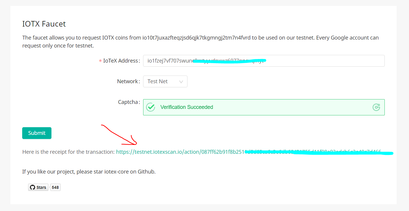 - You Will Receive 1000 IOTX TestNet Tokens