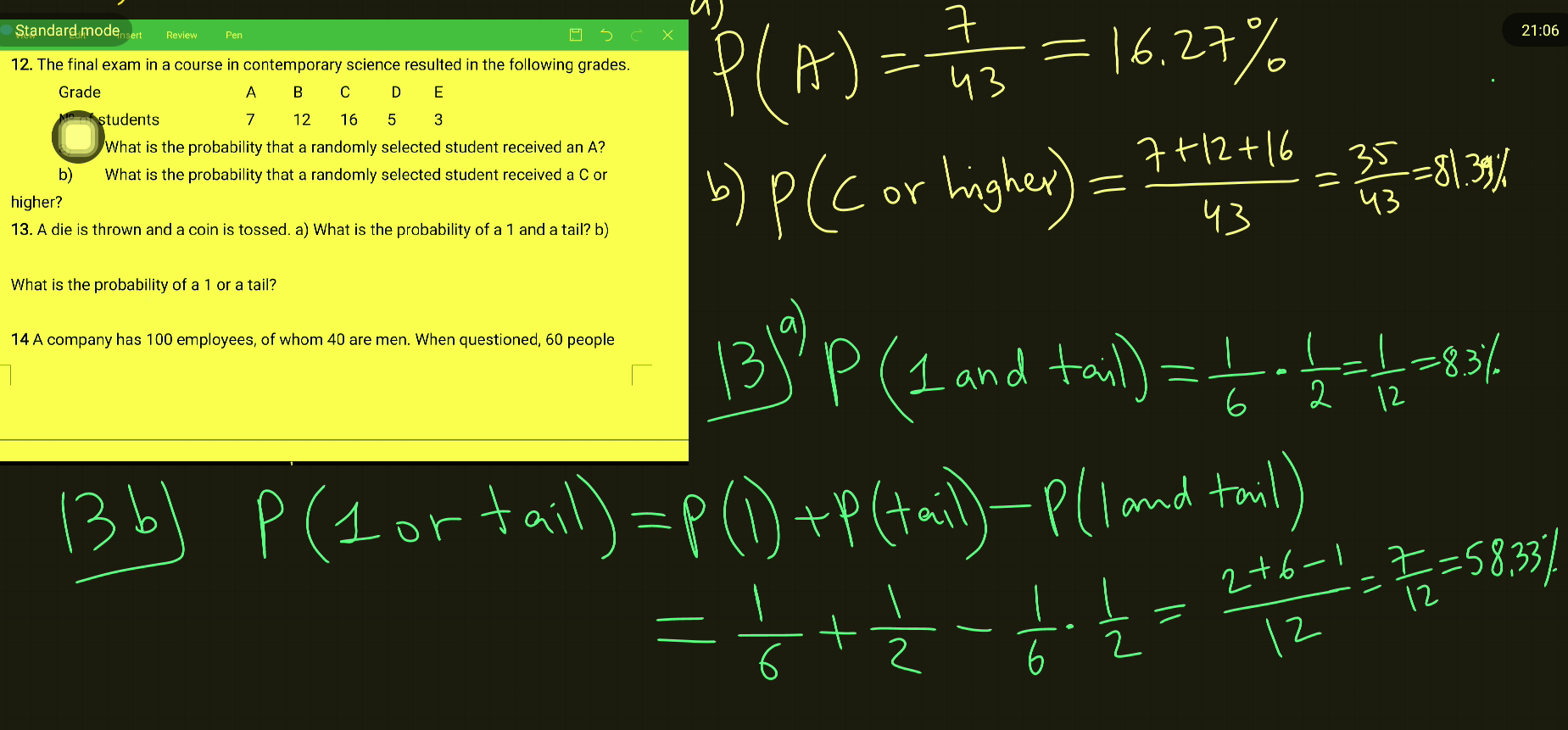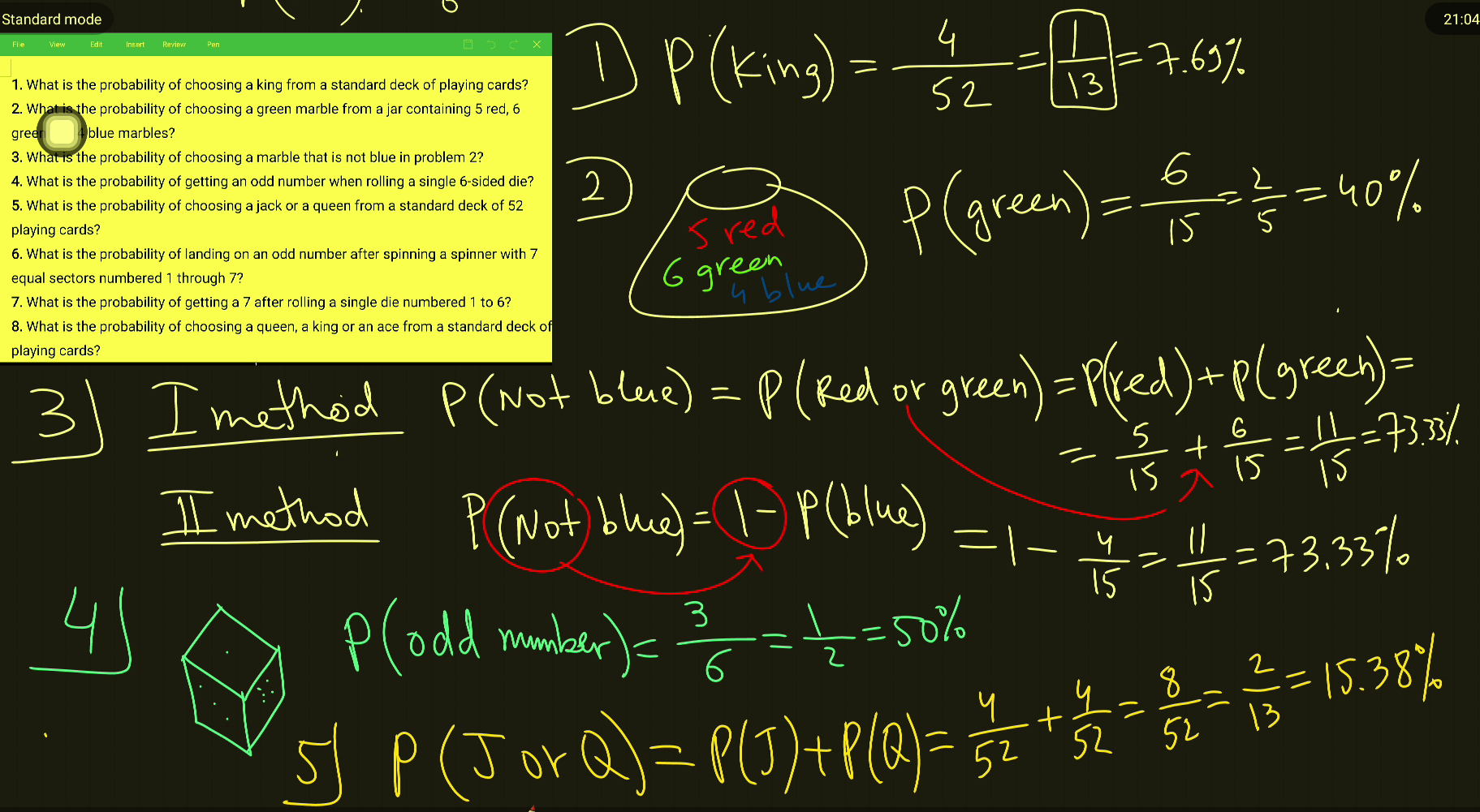 3 even numbers on a die. The total number of possible outcomes is 6 since there are 6