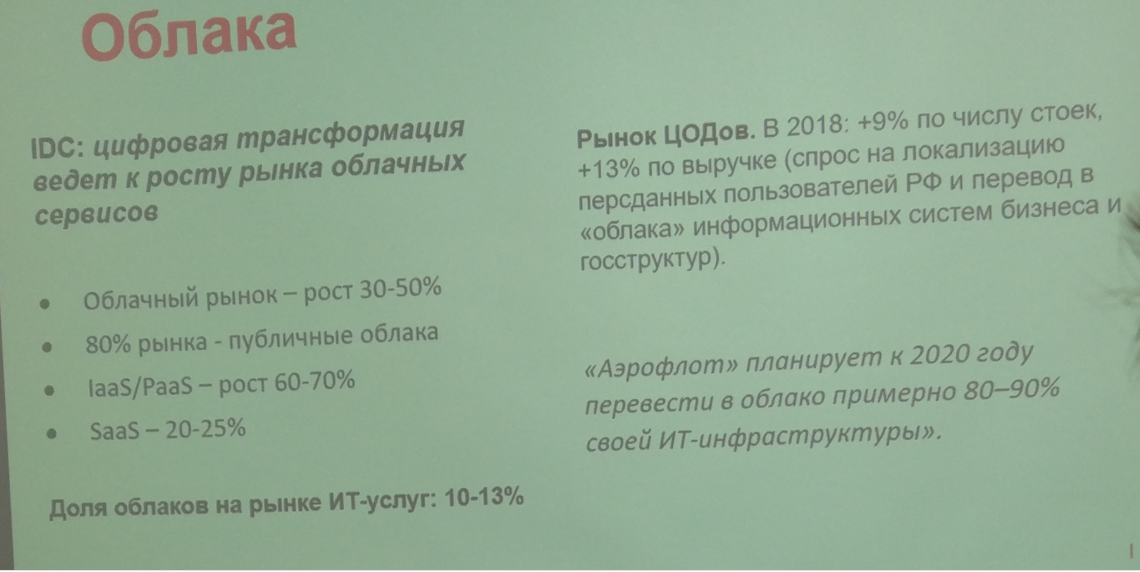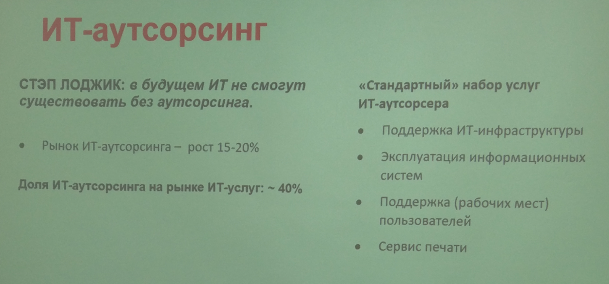 - Облака, ИТ-аутсорс все еще на подъеме.