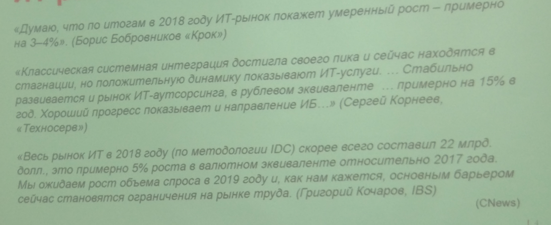 - Отечественный IT рынок показывает небольшой, но рост.