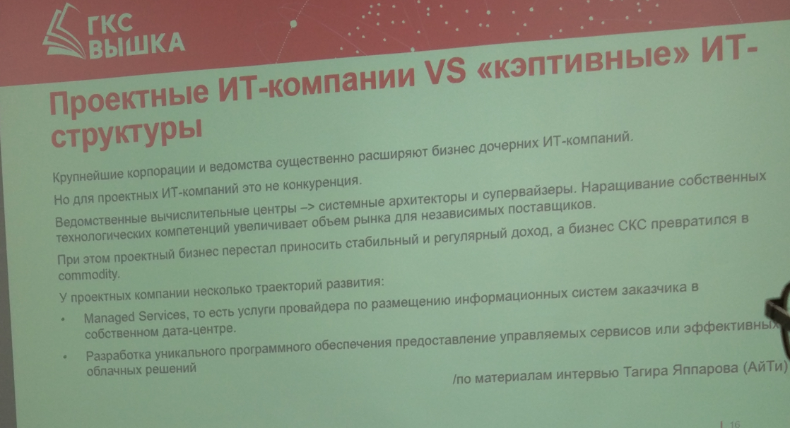 - У проектных ИТ компаний два вектора развития: либо уникальный софт писать или дата центры строить. Можно все вместе.
