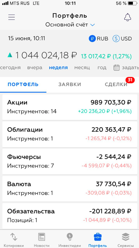 - Результат по нашим портфелям за неделю: