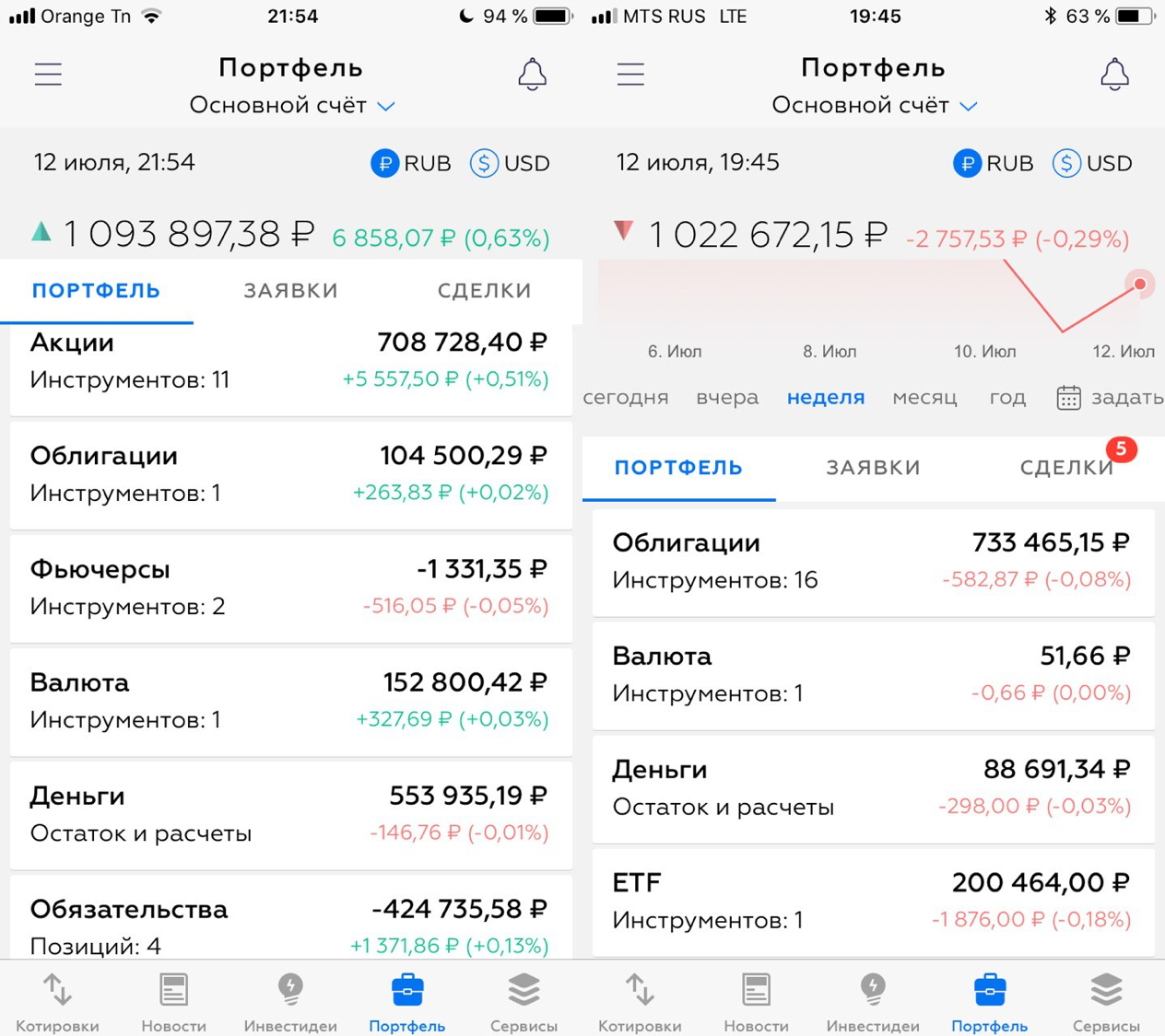 - Результат по нашим портфелям за неделю: