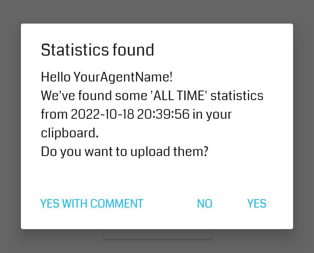 You now have two ways to upload your statistics: either by sharing them directly from Ingress into the Agent Stats app or by copying them and manually opening the Agent Stats app.