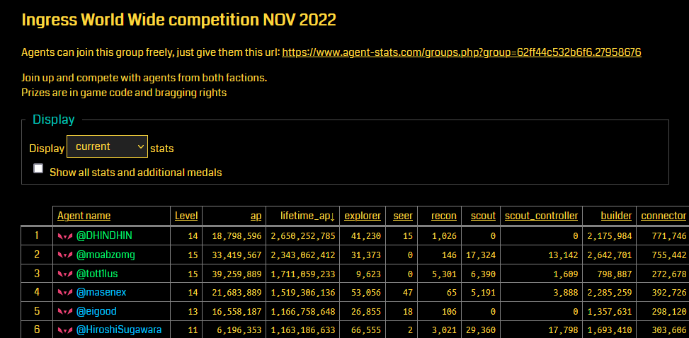 Now it is time to join the IWWC 2022 group on Agent Stats. This makes your last uploaded statistics public! This is needed so we can check each Agents stats and find the best Agents in each category.