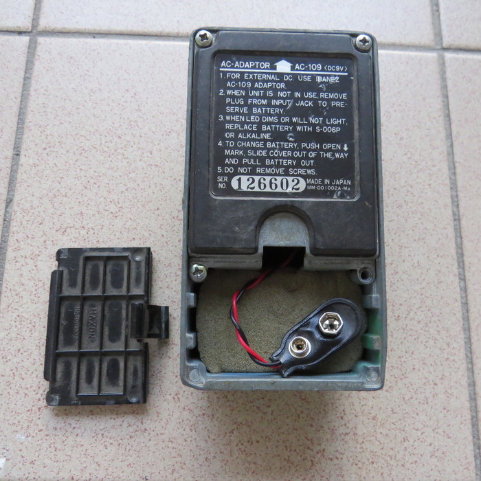 Power Supply: One 9 volt battery (006P) or external AC adapter (Use only DC 9V (Center-negative))