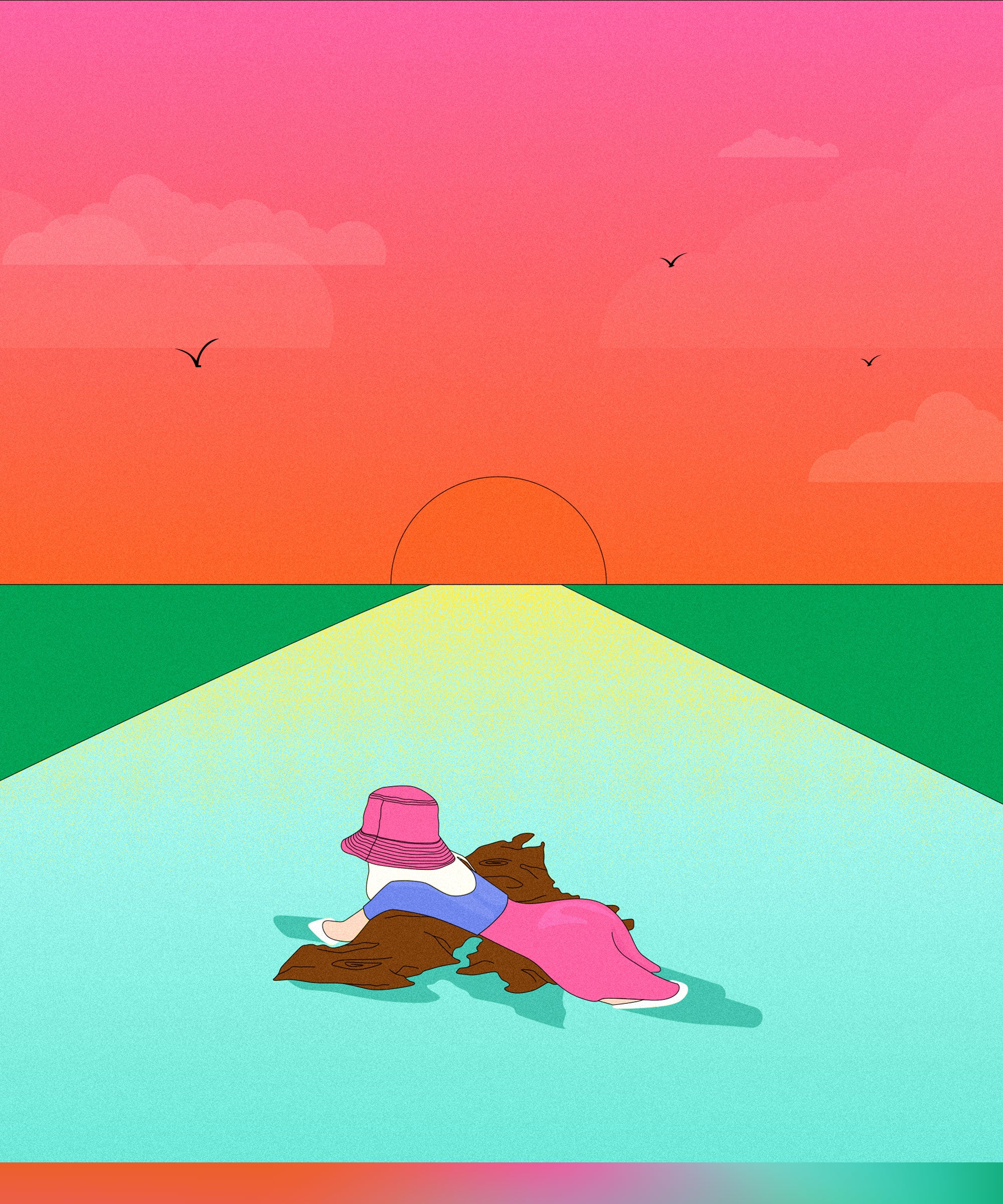 Beim Sonnenbad muss sich das mollige Girl befriedigen