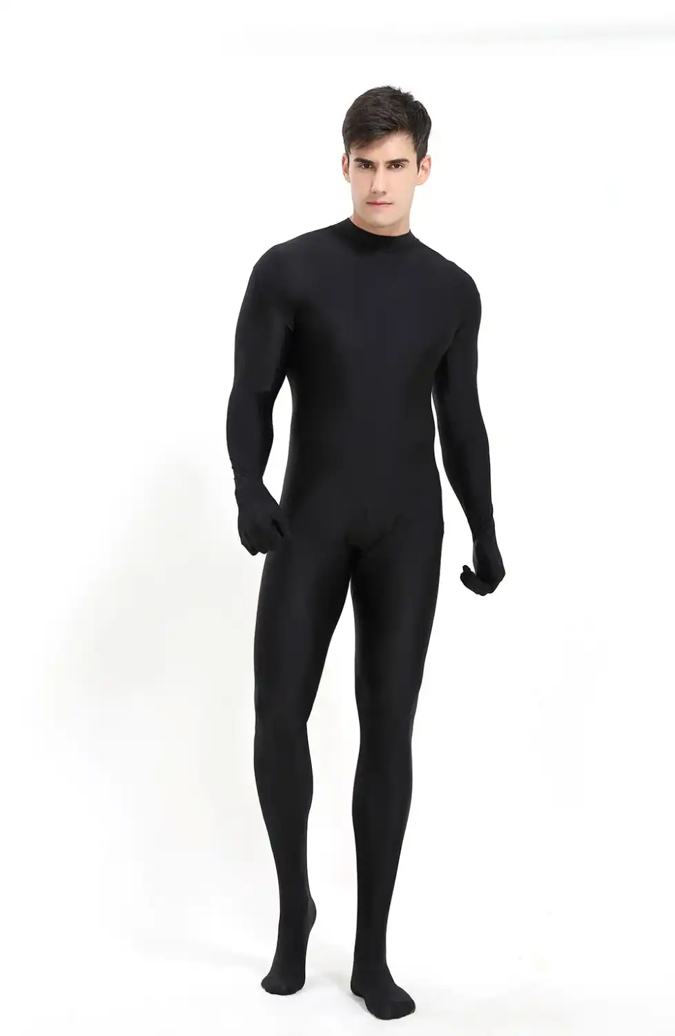 Ich kaufe im Hautengen Spandex Anzug ein