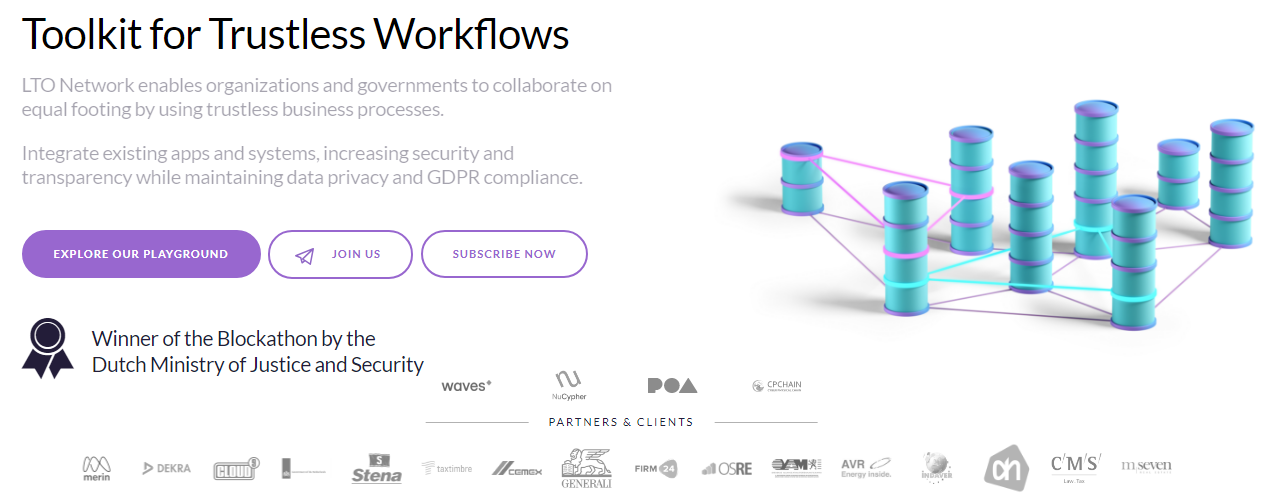 LTO Network - is a hybrid blockchain for digitizing and building trustless business-processes (cross-enterprise) that are compliant with GDPR requirements and Live contracts.