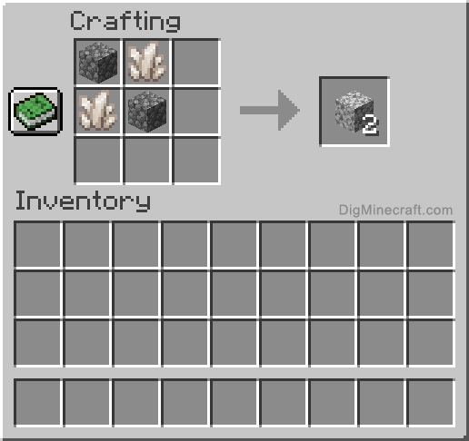ID ID ; Камень: stone: 1: Гранит: granite: 1 1: Полированный гранит: polished_granite: 1 2: Диорит: diorite: 1 3: Полированный диорит: polished_diorite: 1 4: Андезит: andesite: 1 5: Полированный андезит: polished_andesite: 1 6: Дёрн: grass_block: 2: Земля: dirt: 3: Каменистая земля: coarse_dirt: 3 1