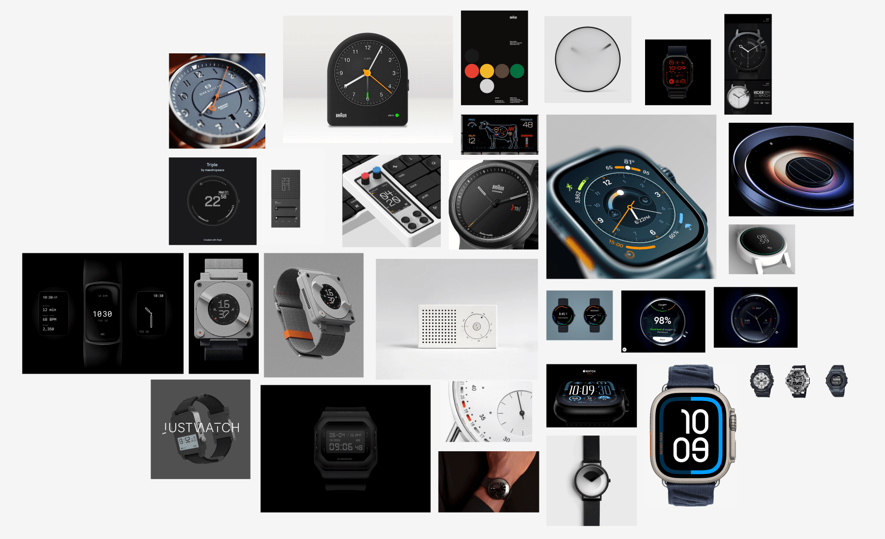 Решил не прогать сразу в документацию, а сначала вдохновиться и насобирать референсов. Оказывается дизайн циферблатов это отдельный мир, поделенный на две части.