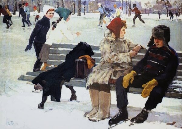 На катке Поучительный рассказ для детей День был солнечный . Лёд блестел . Народу на катке было мало . Маленькая девочка, смешно растопырив руки, ездила от скамейки к скамейке . Два школьника подвязывали коньки и . . .