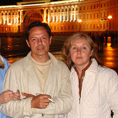 Игорь Скляр с супругой . В 2000 году Игорь Борисович перенёс инфаркт, после которого полностью отказался от алкоголя и сигарет, пересмотрел взгляды на жизнь .