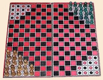 Игра "Уголки" это вариант очень древней игры под названием "Халма" . В оригинале игроки играют на доске 16x16, в России наиболее популярно играть на шахматной доске, 8х8 клеток . Начинается игра с того, что шашки обоих игроков занимают свои позиции (дома) .