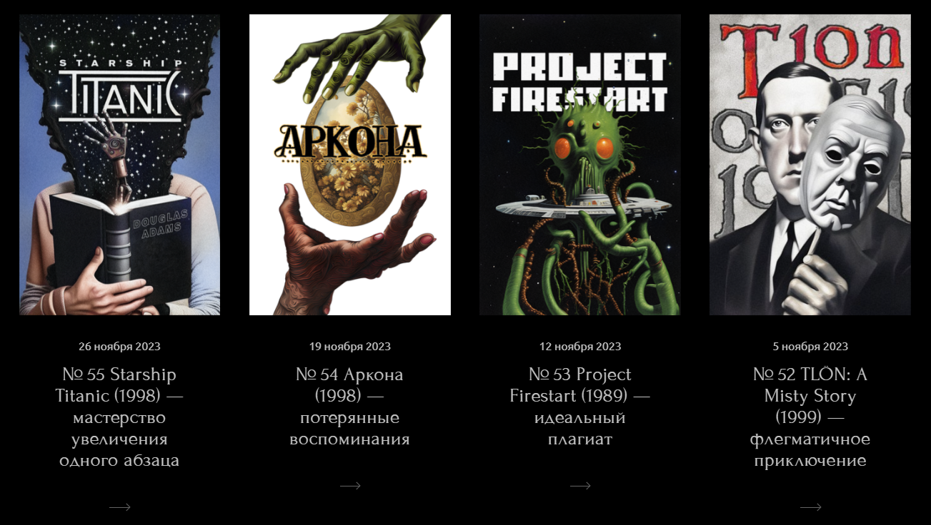 Воспользовавшись системой, которую она предлагала, я с безумным удовольствием прочитал много книг от которых я раньше впадал в сон. Мы даже начинали проект по иллюстрировании всех книг которые прочитывали таким образов (примеры выше). Поняв, что эта система заставляет полюбить то, что раздражало мы, через некоторое время, пришли к идее перенести эту систему на компьютерные игры.