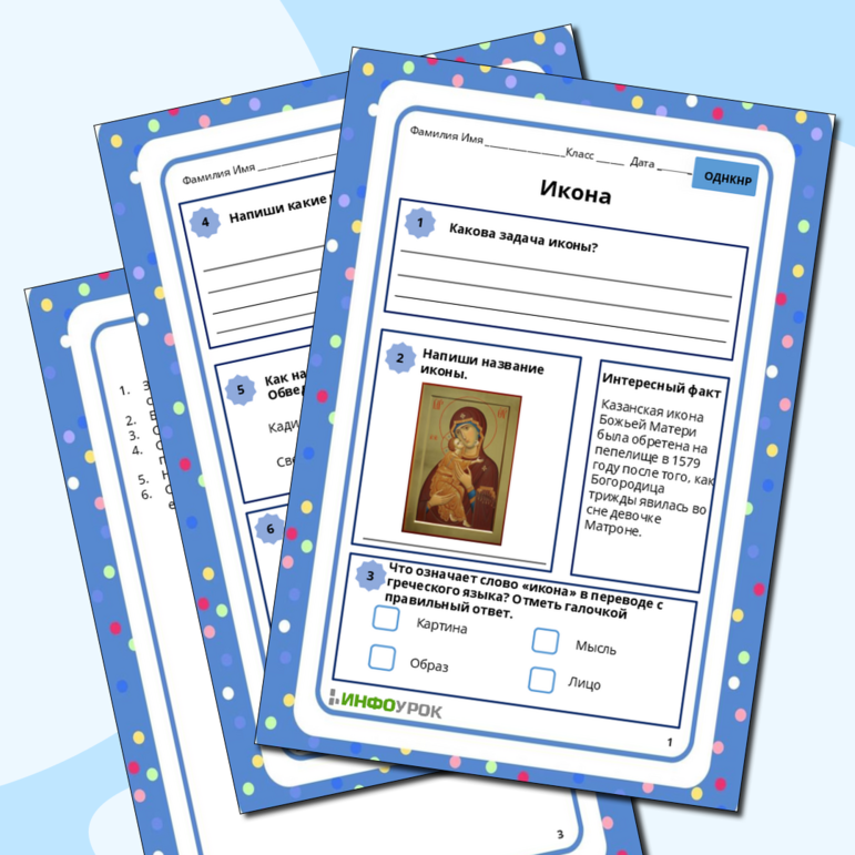 Икона орксэ 4 класс рабочие листы