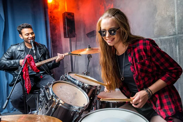 Il batterista prova con una bella bionda