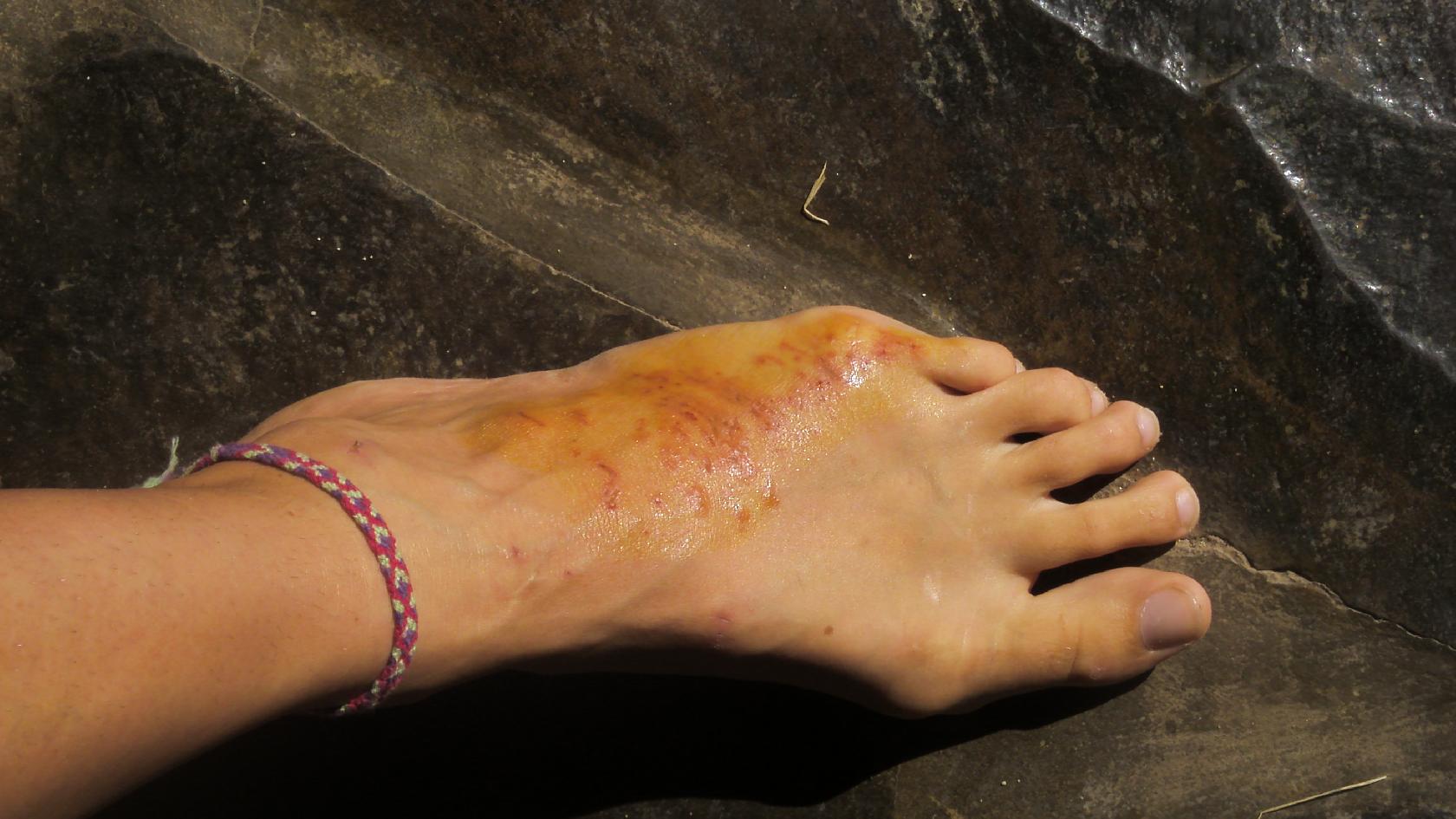Il lèche les pieds de la fille dans le parc