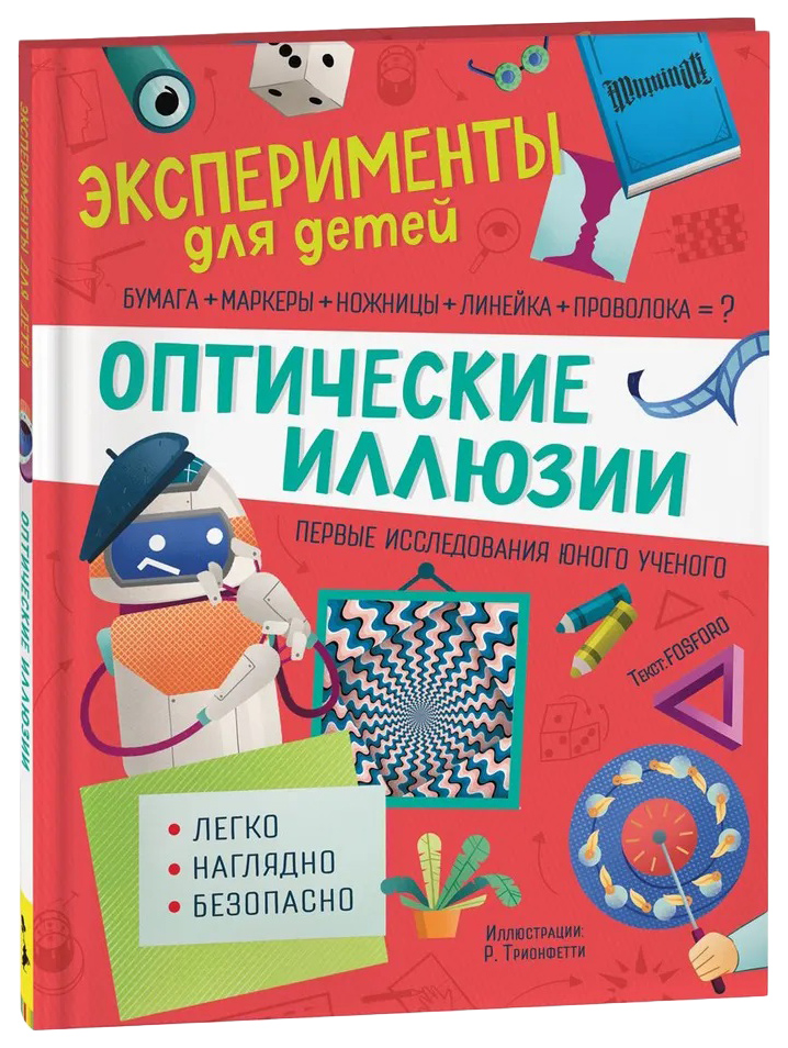 Ce livre raconte des phénomènes optiques fascinants qui surprendront non seulement les jeunes naturalistes, mais aussi leurs parents. Il explique comment et pourquoi divers types d'illusions apparaissent et suggère également de les maîtriser dans la pratique. Pour devenir illusionniste, vous n’avez pas besoin d’équipement complexe et coûteux. Les expériences utilisent les objets et matériaux les plus courants trouvés dans chaque maison.Le célèbre livre « Illusions d'optique » de Yakov Isidorovich Perelman n'est pas seulement un album de dessins étonnants qui ravissent les enfants et donnent le vertige aux adultes. Il vous aidera à regarder le monde à travers les yeux d'un artiste brillant et d'un grand physicien, à pénétrer dans les propriétés de la matière et plus loin dans le miroir, car, comme l'écrivait Emmanuel Kant : « Les sens ne nous trompent pas, pas parce que ils jugent toujours correctement, mais parce qu’ils ne jugent pas du tout.Le célèbre livre « Illusions d'optique » de Yakov Isidorovich Perelman n'est pas seulement un album de dessins étonnants qui ravissent les enfants et donnent le vertige aux adultes. Il vous aidera à regarder le monde à travers les yeux d'un artiste brillant et d'un grand physicien, à pénétrer dans les propriétés de la matière et plus loin dans le miroir, car, comme l'écrivait Emmanuel Kant : « Les sens ne nous trompent pas, pas parce que ils jugent toujours correctement, mais parce qu’ils ne jugent pas du tout."La vision trompe souvent le cerveau, lui donnant des informations incorrectes ou déformées. Et le cerveau lui-même est souvent heureux d'être trompé - il corrèle paresseusement l'expérience visuelle avec ce qui a déjà été vécu auparavant et n'est pas du tout prêt à analyser à nouveau soigneusement les informations. Par conséquent, nous lisons souvent de manière incorrecte et pouvons obtenir un « gratuit » au lieu de « privé de droits », une « commande » au lieu de « cadeau », etc. Mais dans ce livre, nous parlerons d'illusions dessinées. Vous apprendrez à tromper le cerveau en. lui confier des tâches pour déterminer la distance entre les objets, leur nombre et leur taille. » Eksmo Publishing House Softcover Volume - 128 pages Format - 130x165 mm ISBN 978-5-04-120055-8 Année de publication : 2021.Le célèbre livre « Illusions d'optique » de Yakov Isidorovich Perelman n'est pas seulement un album de dessins étonnants qui ravissent les enfants et donnent le vertige aux adultes. Il vous aidera à regarder le monde à travers les yeux d'un artiste brillant et d'un grand physicien, à pénétrer dans les propriétés de la matière et plus loin dans le miroir, car, comme l'écrivait Emmanuel Kant : « Les sens ne nous trompent pas, pas parce que ils jugent toujours correctement, mais parce qu’ils ne jugent pas du tout.