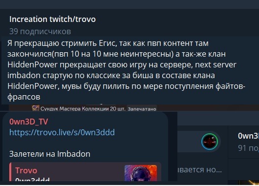 xSeven кстати с ходу заехал в мид вар босика на выходные, где попукивая его фармили местные мид вар кланы: 86th/MacfeerChat и не сладко ребятам пришлось, у мид вар кланов не было координации как таковой (макфиру нужно брать уроки у кагана, "управление пвп с помощью стрима"), да и по профам парни без саппорта играют. Но на радость мид бойцам, Севен с понедельника заезжает с 2х ног в биг вар, а вот на чьей стороне, пока не ясно. В 50 человек он вряд ли будет действовать в один таг, как минимум у них 100% братство с imad, но думаю будет еще какой то клан из "местных", там как раз 9029+Epidemic альянс распался, думаю будет кто-то из них в али с Imad и Seven.