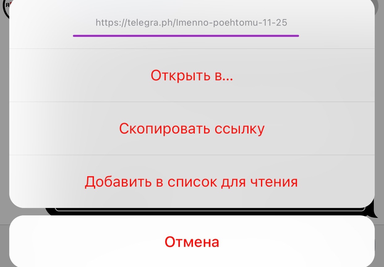 Поэтому имеет смысл проверять ссылки посредством длительного нажатия на них: появится меню, вверху которого отобразится оригинальная ссылка: