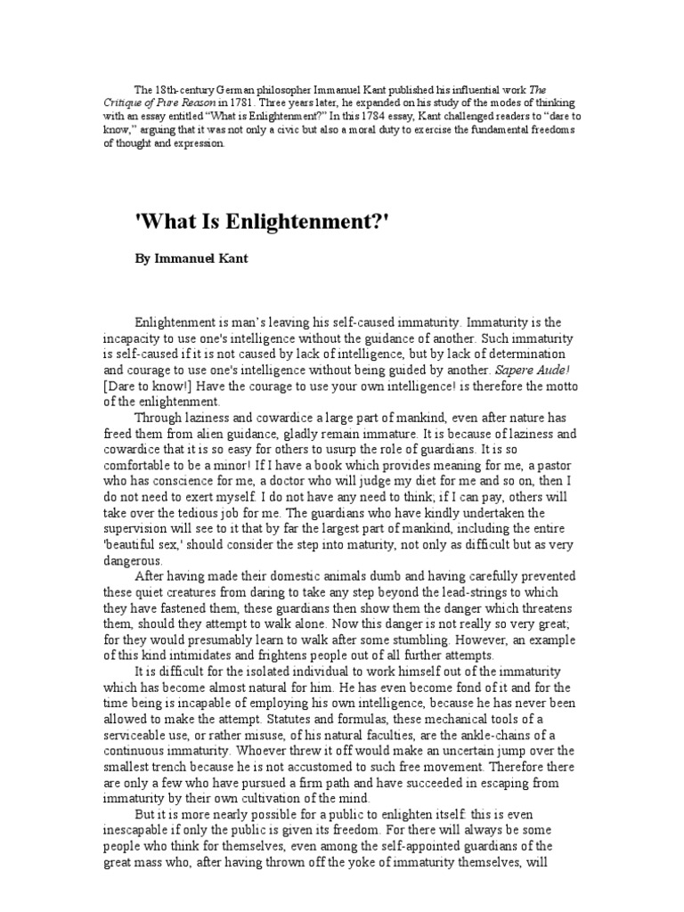 PDF Immanuel Kant: What is Enlightenment?, 1784