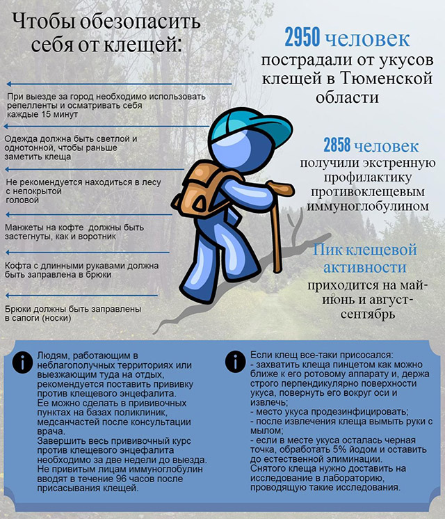 Жителям области — в областных больницах в муниципальных образованиях . Снятых клещей рекомендуется исследовать на наличие возбудителей инфекционных болезней в лабораториях ФБУЗ «Центр гигиены и эпидемиологии в Тюменской области» и ФБУН «Тюменский НИИ краевой инфекционной патологии» Роспотребнадзора . О профилактике нужно думать и хозяевам собак .