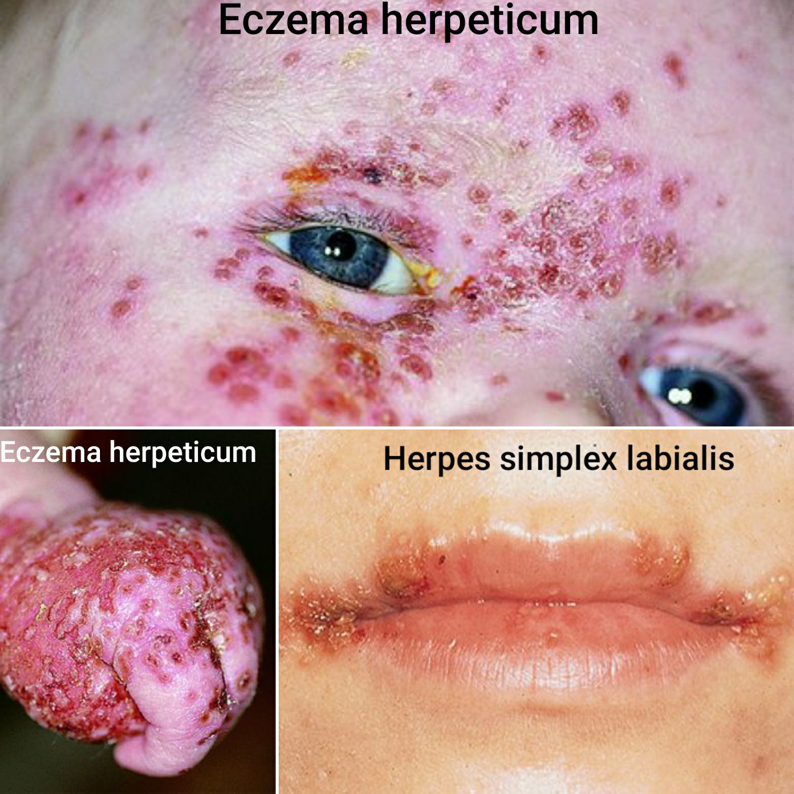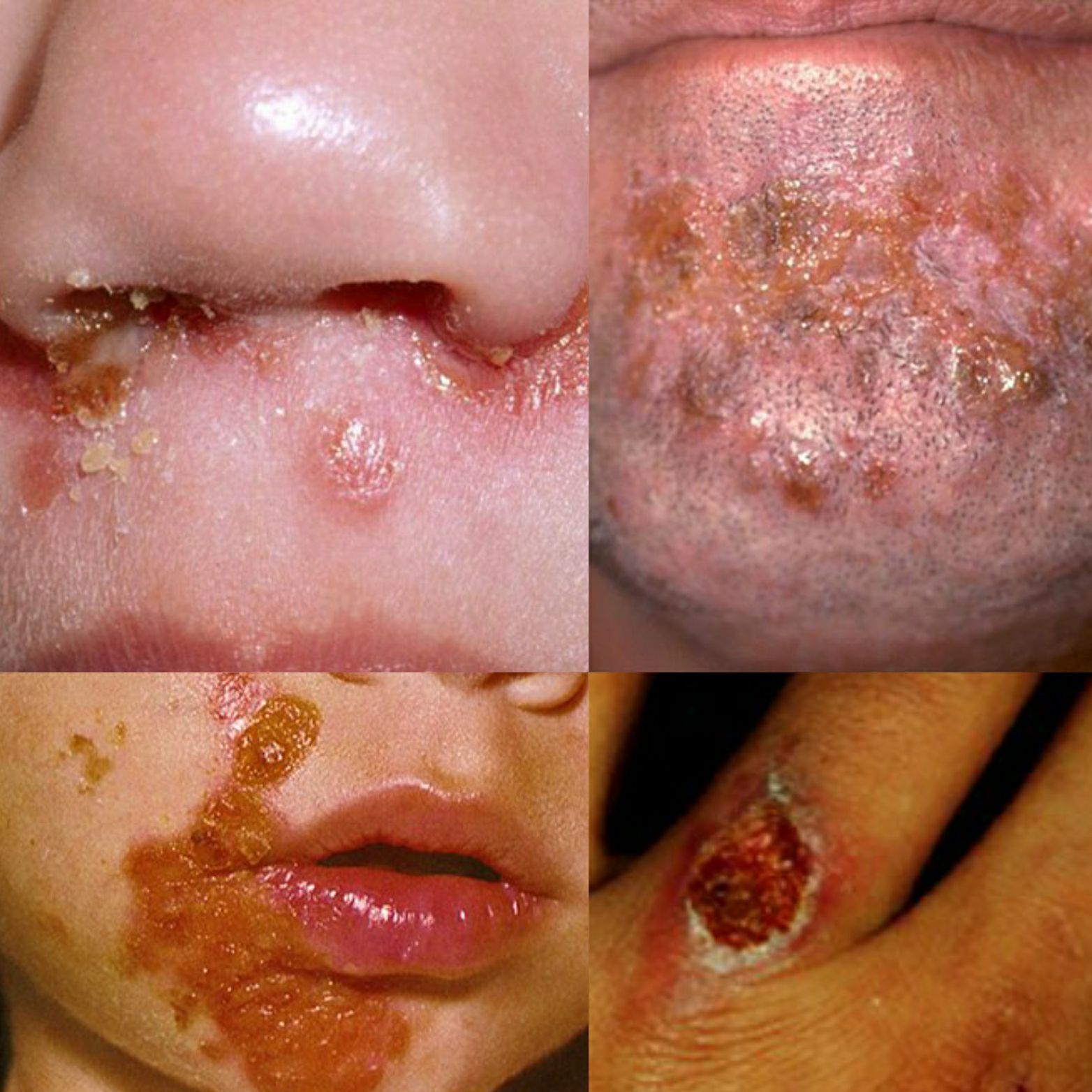 ● Nonbullous impetigo – Skin conditions that may share features with nonbullous impetigo include a variety of inflammatory conditions that may present with localized areas of inflammation. Examples include contact dermatitis(picture1), tinea infection(picture3), and eczema herpeticum and other herpes simplex virus infections (picture5). Recognition of the characteristic golden crust should raise suspicion for impetigo.