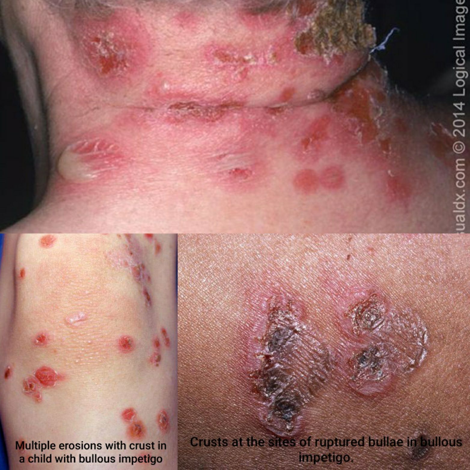 The differential diagnosis of impetigo differs based upon the clinical presentation. Gram stain and culture are useful for confirming the etiologic diagnosis: