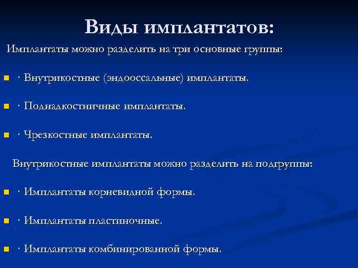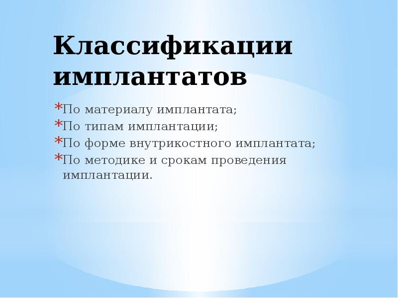 Имплантация классификация