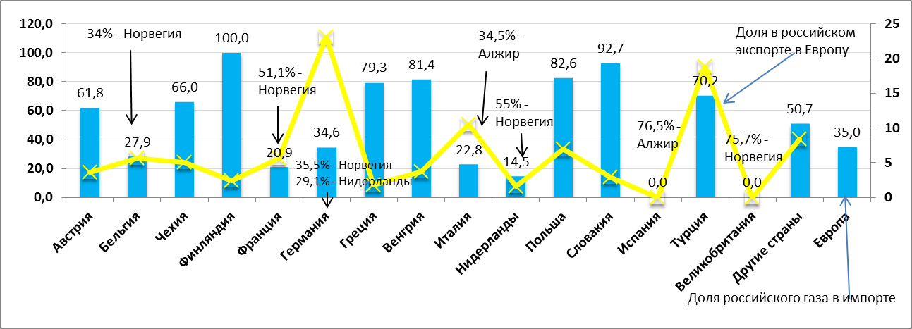 Импорт газа европой
