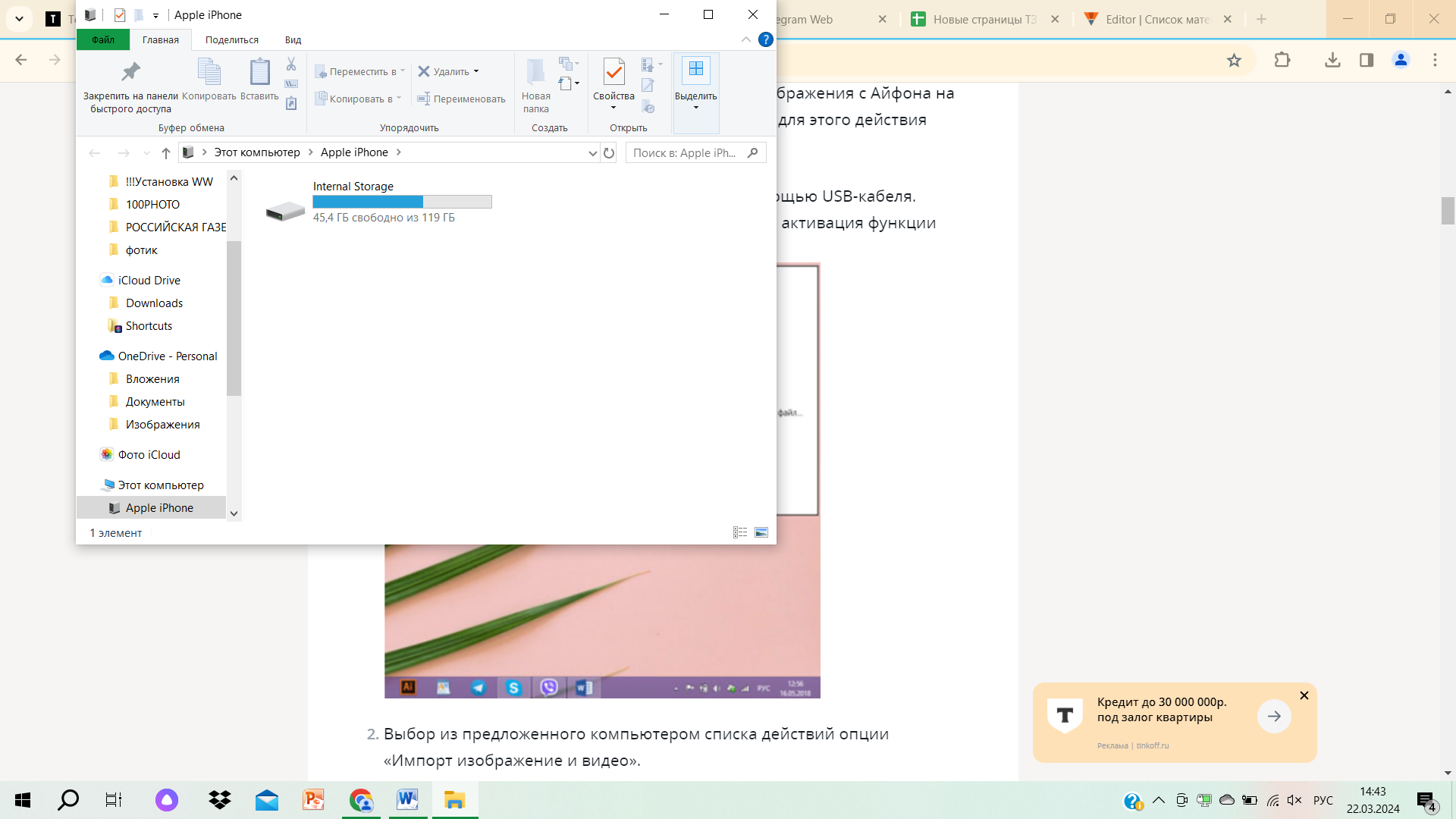 Импорт с телефона на компьютер