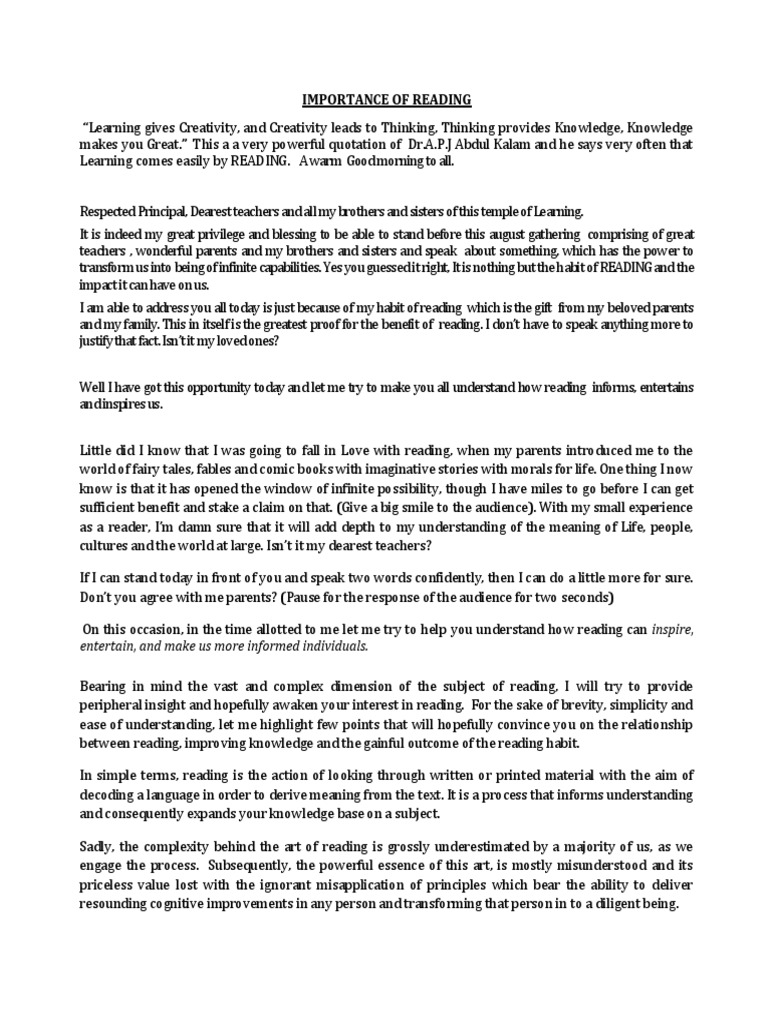 Importance Of Reading Essay