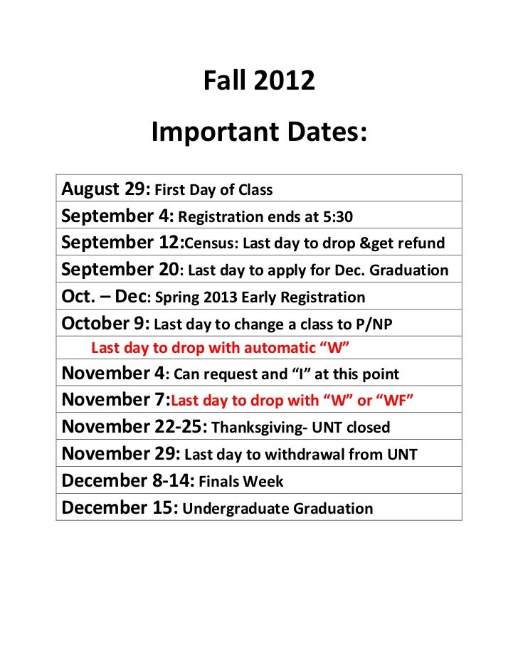 Important Dates | Office of the Registrar