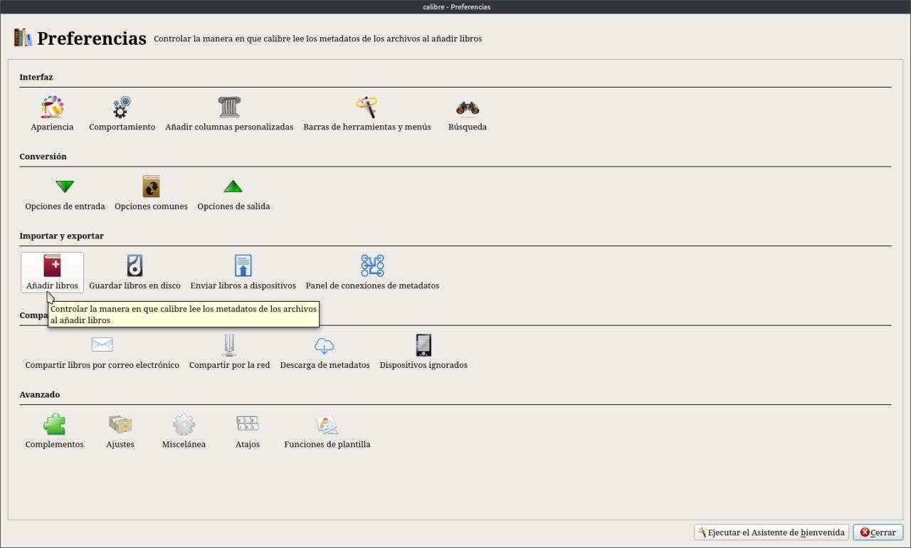 Nos vamos a Preferencias / Añadir Libros