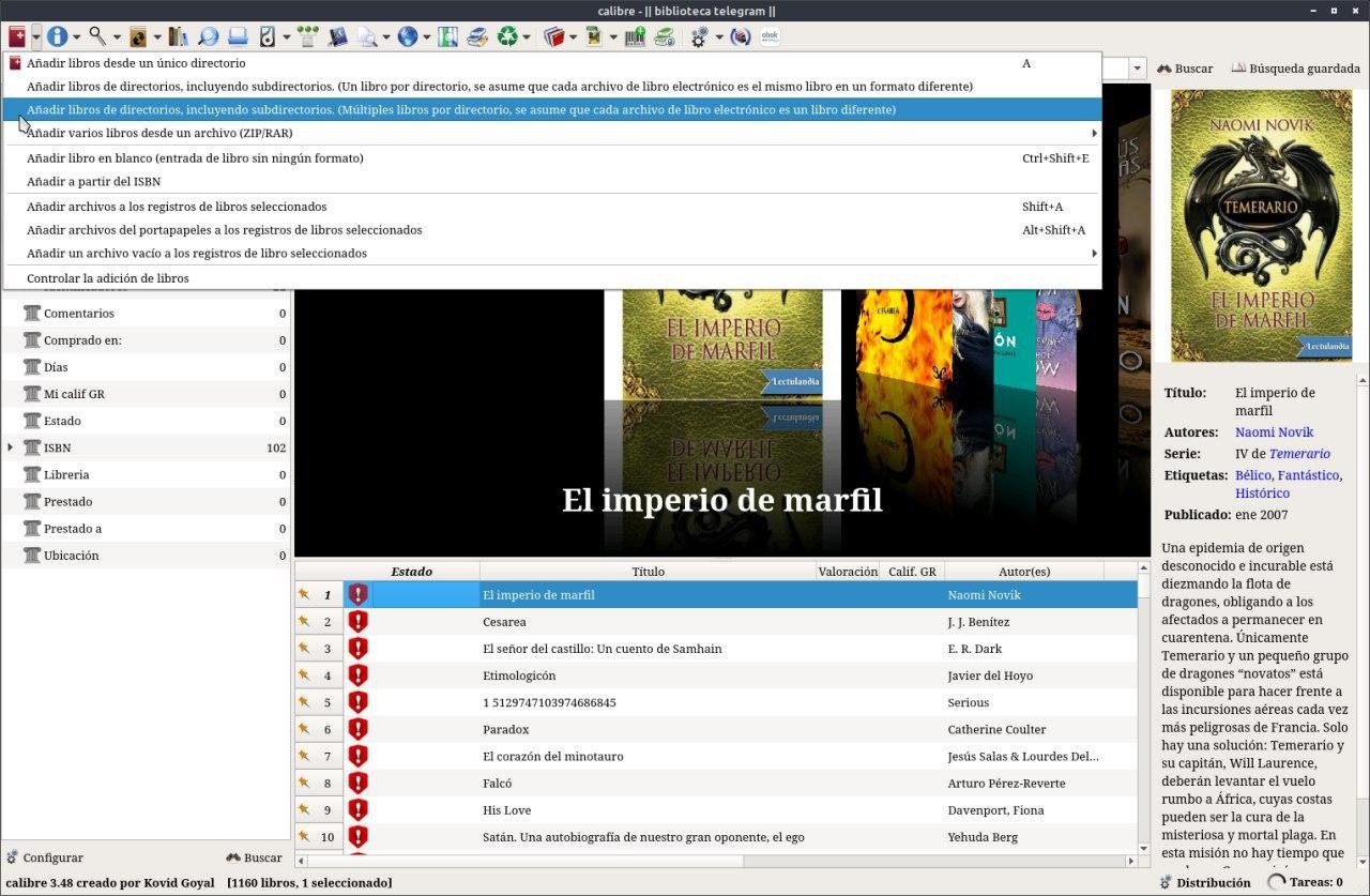 Aparte del los pasos anteriores, muy importante, que me olvide es seleccionar en Añadir libros de directorios múltiples libros por directorios.