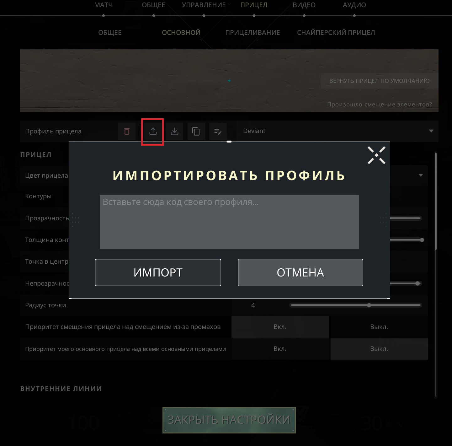 Импортировать прицелы