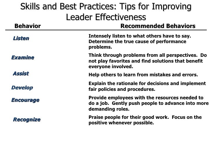 Leadership Styles and Methods : Assessing and Improving Your Skills . Leadership goes beyond being appointed "the manager ." . Leadership has to do with whom the people are following . Leaders influence others' behaviors . To become more effective, leader-managers must learn how to influence others with the intent of effectively motivating them . . .