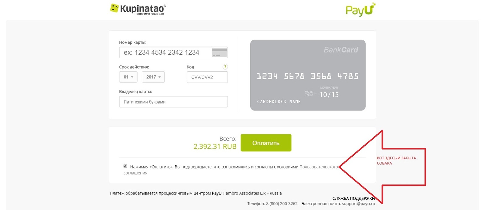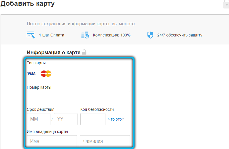 Имя владельца на карте